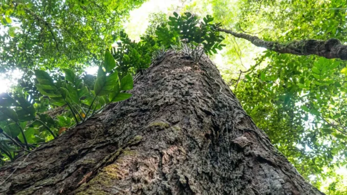 Um verdadeiro gigante da natureza foi encontrado no coração da Amazônia: trata-se de um exemplar da espécie angelim-vermelho (Dinizia excelsa), que alcança 88,5 metros de altura e cerca de 9 metros de circunferência. A árvore, localizada na Floresta Estadual do Paru, entre os estados do Pará e Amapá, é atualmente considerada a mais alta já registrada no Brasil e uma das maiores da América Latina. Estima-se que sua idade esteja entre 400 e 600 anos.