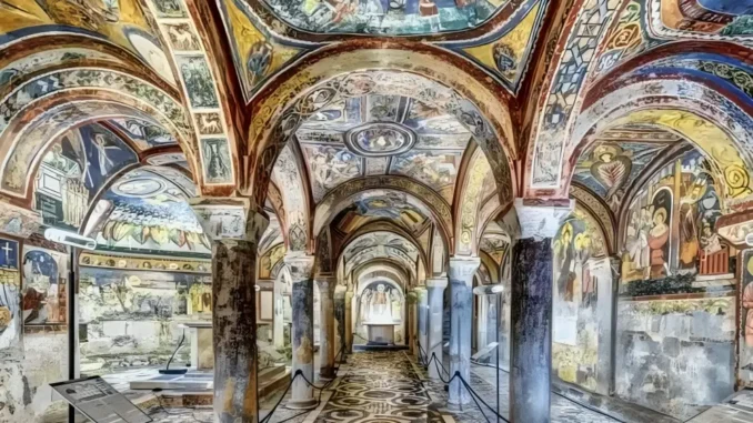 Construída entre os séculos XI e XII, a cripta não é apenas um espaço religioso. É um documento vivo, pintado em cores que resistiram ao esquecimento, à umidade e às guerras. Um lugar onde a Idade Média revela sua face mais sofisticada, curiosa e intelectualmente ousada.