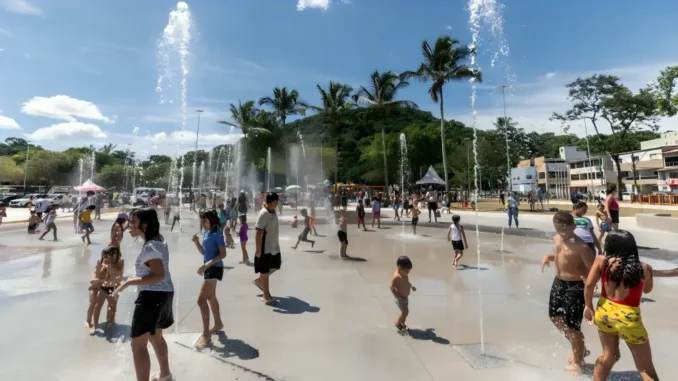 Espaço inaugurado em 2024 oferece lazer gratuito com 24 jatos d’água e estrutura de 42,5 mil m².