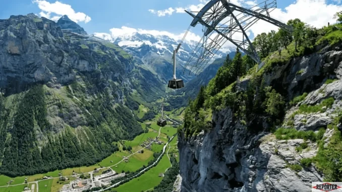 Em Mürren, a jornada até o destino é tão marcante quanto a estadia. O acesso é feito exclusivamente por teleféricos e trens de montanha. A partir do fundo do Vale de Lauterbrunnen, os visitantes sobem por cabines suspensas que revelam paredões rochosos, cachoeiras gigantescas e uma vista panorâmica dos Alpes Berneses.