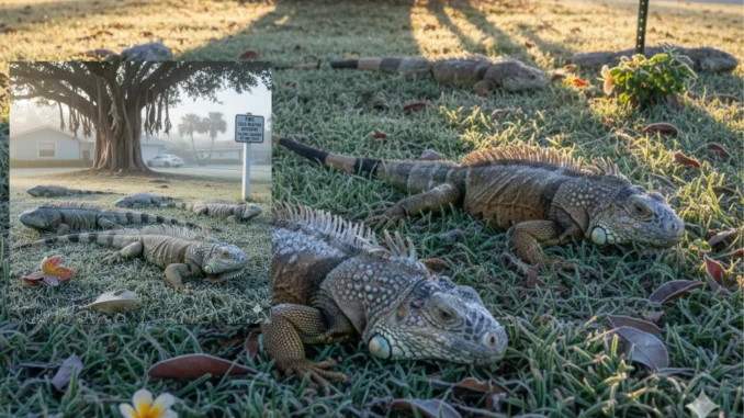 No sul da Flórida, o inverno traz um fenômeno curioso e frequente em dias de frio intenso: iguanas que caem das árvores. No último domingo, 1º de fevereiro de 2026, os moradores da região voltaram a registrar essa cena após as temperaturas caírem para 4°C. O evento ocorre porque esses répteis, ao serem expostos ao frio extremo, perdem o controle muscular e despencam de seus locais de repouso.