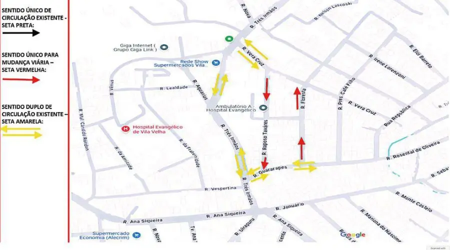 A Prefeitura de Vila Velha vai implementar mudanças viárias no bairro Alecrim a partir desta quinta-feira (6). As alterações, coordenadas pela Secretaria de Defesa Social e Trânsito, têm como objetivo organizar o fluxo de veículos e pedestres nas proximidades do Hospital Evangélico.